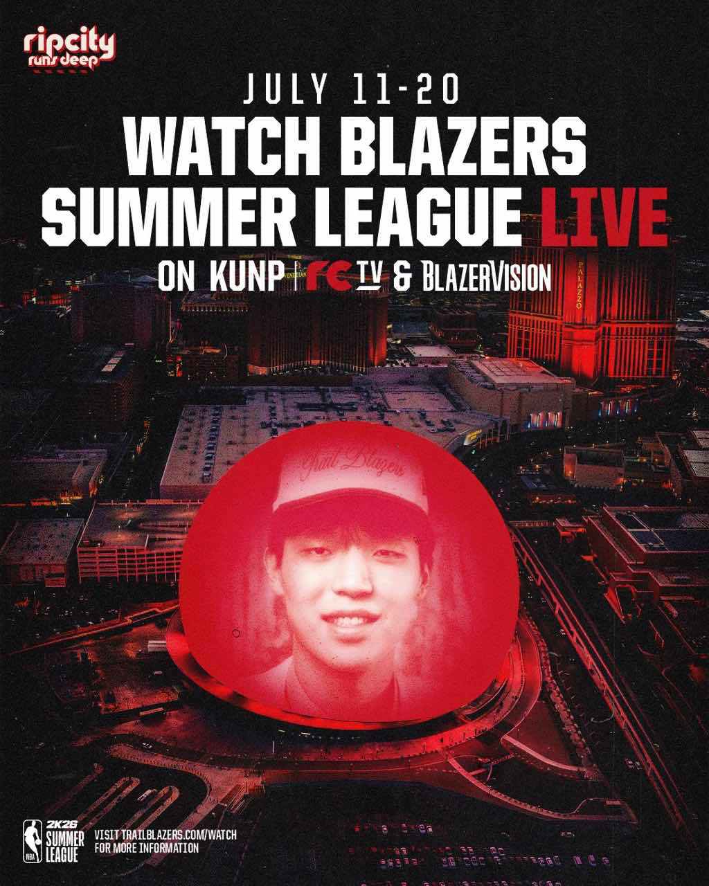雷速体育7月5日讯 今日,开拓者官方公布了拉斯维加斯夏季联赛名单,其中杨瀚森作为封面人物,出现在了拉斯维加斯标志性建筑Sphere上。